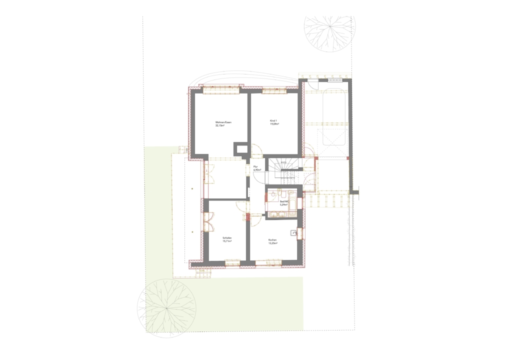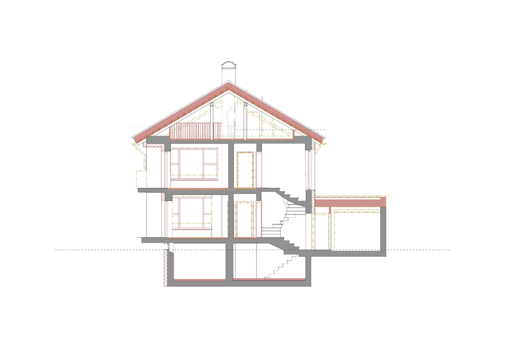 In Trudering-Riem soll ein bestehendes Zweifamilienhaus energetisch umfassend saniert werden, um es langfristig und nachhaltig für kommende Generationen nutzbar zu machen. Gleichzeitig wird das Wohnkonzept weiterentwickelt, damit es besser zu den Bedürfnissen einer Familie passt. Ein zentraler Bestandteil des Vorhabens ist der geplante Ausbau des Dachgeschosses. Dadurch entsteht zusätzlicher Raum, der der oberen Wohneinheit künftig als kombinierter Schlaf- und Arbeitsbereich dienen soll. Dieser Ausbau schafft nicht nur mehr Platz, sondern verbessert auch die Wohnqualität deutlich.
